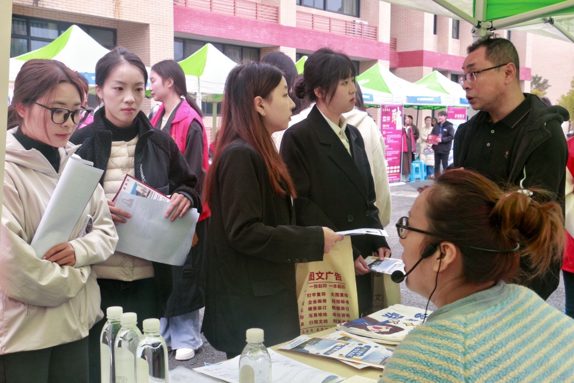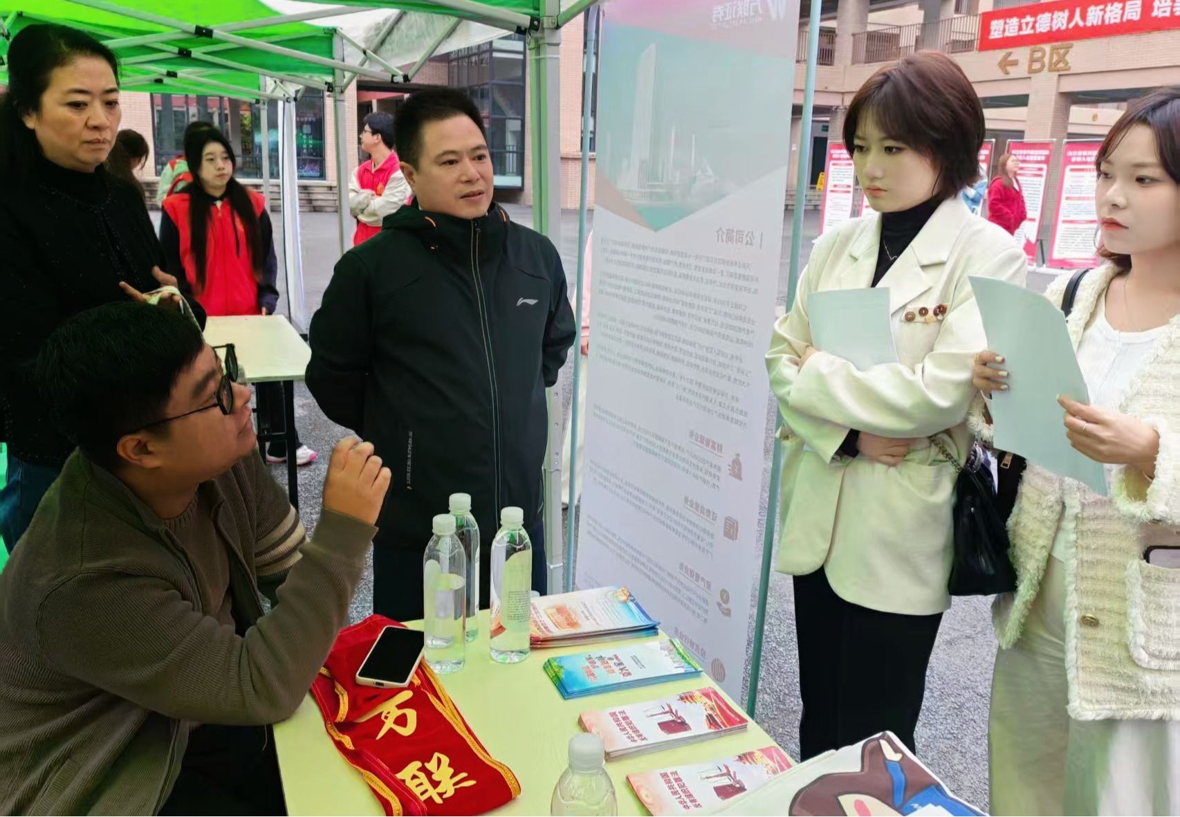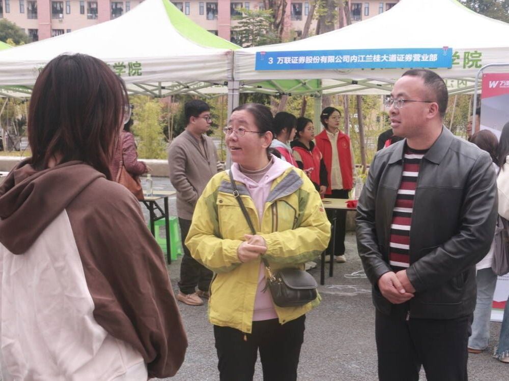 本次招聘的企业来自成都、内江、遂宁等地,招聘岗位涉及管培生、理财顾问、营销策划、电商运营等多个类别。毕业生携简历与用人单位就岗位要求、工作内容、职业发展、薪酬福利等问题展开深入交流。深圳平安金融服务有限公司内江分公司、深圳慧通商务有限公司和万联证券股份有限公司内江兰桂大道证券营业部三家企业凭借清晰的职业发展路径和具有竞争力的薪酬,成为现场关注的焦点,咨询的毕业生络绎不绝。其他企业展位前,毕业生也结合专业所长与实践经历主动自荐、询问细节,用人单位耐心答疑,现场形成企业和求职者的良性互动。