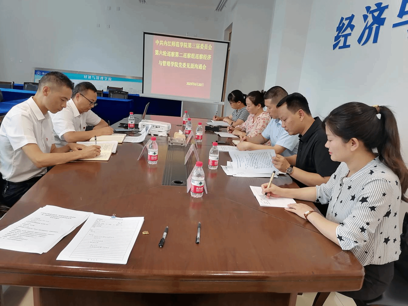 根据学校三届党委第六轮巡察工作部署安排,2023年6月20日,党委第二巡察组巡察经济与管理学院党委工作动员会在弘文楼320会议室举行。第二巡察组全体成员、经济与管理学院领导班子成员、三办主任、教研室主任、实验室主任、专业负责人、支部书记、纪检监察委员、辅导员及学生代表参会。会议由经济与管理学院党委书记范雪刚主持。