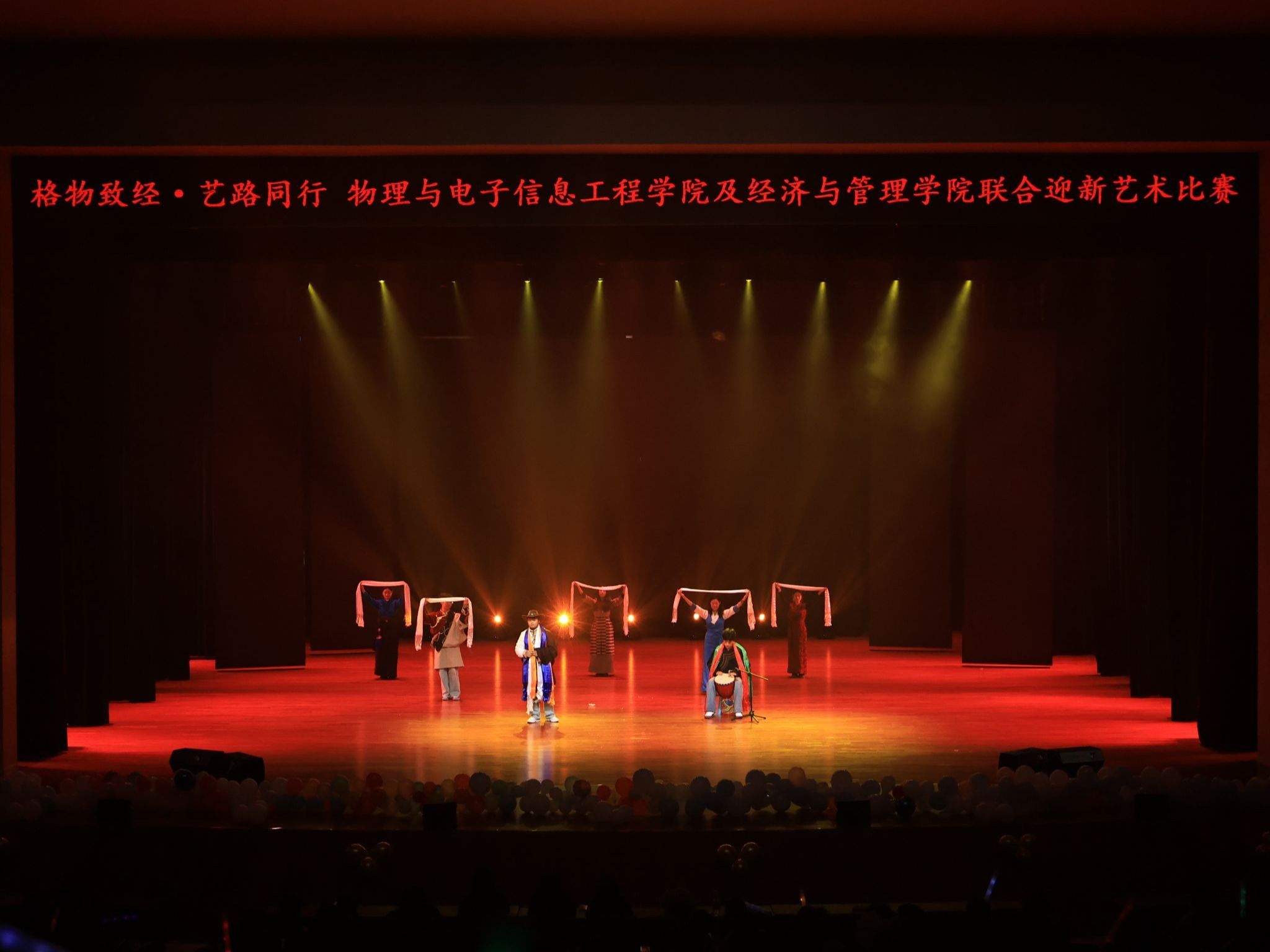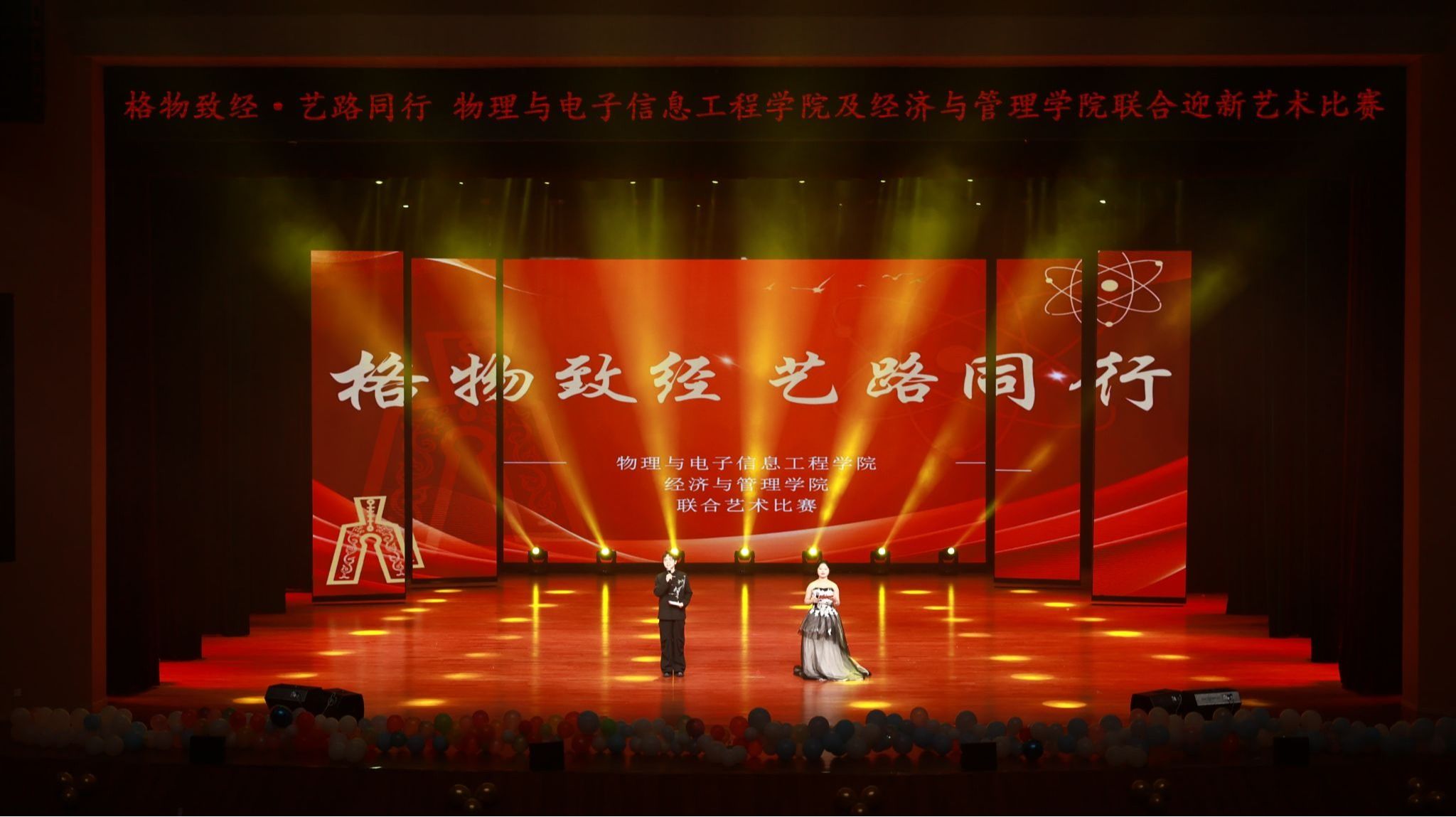 为深化2025级新生对学院的认同与归属,展现新时代青年多元融合的艺术风采,引导青年学子坚定文化自信、厚植爱校荣院情怀,10月22日至12月11日,物理与电子信息工程学院、经济与管理学院携手举办首届“格物致经·艺路同行”联合迎新艺术比赛。活动涵盖主持、舞蹈、歌手、手抄报、摄影、征文六大类别,以艺术为桥,贯通理性与感性,为师生呈现了一场融合思想深度与审美高度的文化盛宴。
