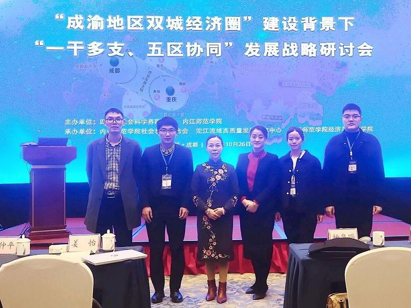 2010年10月26日,由四川省社会科学界联合会、内江师范学院联合主办,内江师范学院社科联、沱江流域高质量发展研究和我院联合承办的“成渝地区双城经济圈”建设背景下“一干多支、五区协同”发展战略研讨会在成都顺利召开。来自四川大学、电子科技大学等21家省内高校的专家学者,省社科院、省发改委、省统计局相关研究院所的领导和专家,以及成都市、内江市等11个市州社科联和市州相关部门的代表100余人参加了本次研讨会,本次会议也收到了来自川渝两地学者的会议论文72篇。