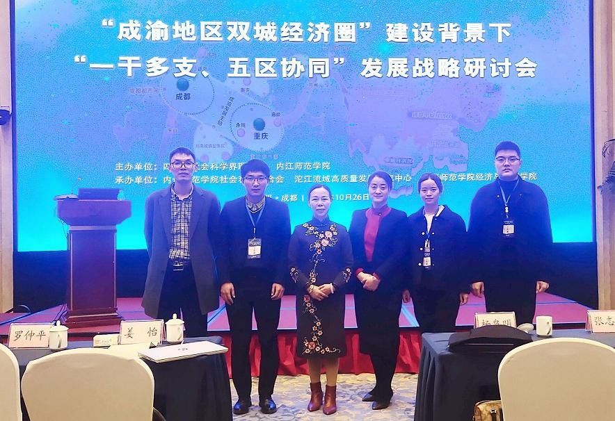 2010年10月26日,由四川省社会科学界联合会、内江师范学院联合主办,内江师范学院社科联、沱江流域高质量发展研究和我院联合承办的“成渝地区双城经济圈”建设背景下“一干多支、五区协同”发展战略研讨会在成都顺利召开。来自四川大学、电子科技大学等21家省内高校的专家学者,省社科院、省发改委、省统计局相关研究院所的领导和专家,以及成都市、内江市等11个市州社科联和市州相关部门的代表100余人参加了本次研讨会,本次会议也收到了来自川渝两地学者的会议论文72篇。