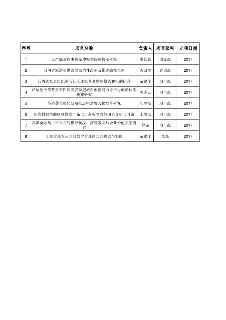 经济与管理学院2017年度教师科研项目一览